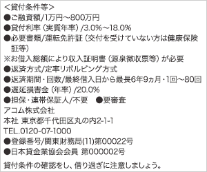 | アコム | 個人事業主の方は、生計費および事業費に限る |